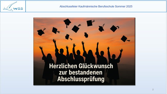 Am 27.06.2025 fand die Abschlussfeier der Kaufmännischen Berufsschule bei hochsommerlichen Temperaturen in unserer vollen Aula statt. Insgesamt wurden 171 Schülerinnen und Schüler verabschiedet, welche die Sommerprüfung 2025 erfolgreich absolviert haben. Den Wilhelm-Schickard-Preis für die beste Abschlussprüfung erhielt in diesem Jahr Alissia Riegger aus der W3KG1 von der Bauwerk Parkett Deutschland GmbH in Bodelshausen. Gesponsert wurde der Preis von der Firma Kemmlit Services GmbH in Dusslingen – vielen herzlichen Dank für diese tolle Unterstützung. Neben dem Wilhelm-Schickard-Preis durften Abteilungsleiter Andreas Türk und Schulleiter Martin Riehle eine Vielzahl weiterer Preise und Belobigungen verliehen. Ein ganz besonderer Dank geht an die Lehrerband um Ann-Katrin Brenner, Thomas Koch und Andreas Boll für die wunderbare musikalische Umrahmung der Feier.