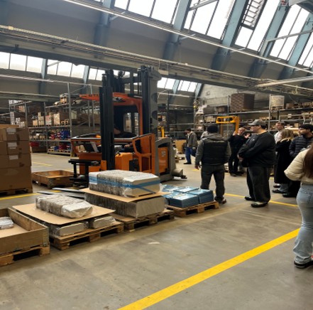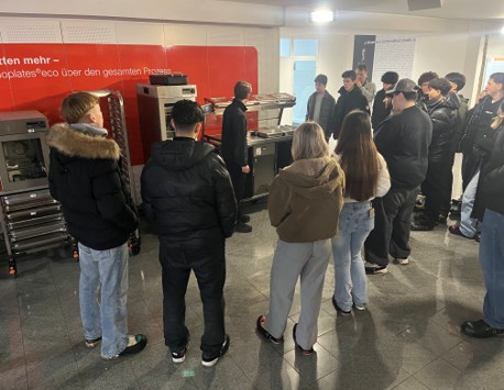 Die Führungen durch das Unternehmen hatte Thomas Priebe von der Personalabteilung für die BK-Klassen konzipiert und sich dafür etwas Besonderes ausgedacht. Die Unterrichtseinheit „Beschaffung und Lager“ ist Teil des Bildungsplans im kaufmännischen Berufskolleg. Referent Priebe, selbst Absolvent des Berufskollegs mit anschließendem BWL-Studium, wusste genau, wo die Schülerinnen und Schüler stehen und holte sie in ihrer aktuellen Lernsituation in der Schule ab. Aus trockener Theorie wurde lebendige Praxis, die entsprechenden Abläufe konnten direkt verfolgt werden. Darüber hinaus begegneten die Schülerinnen und Schüler vielfach Auszubildenden des Betriebs, die im gleichen Alter waren und „mit denen man reden konnte“. Es gab Butterbrezeln und Wasserflaschen für die interessierten Besucher, die sich sichtlich wertgeschätzt fühlten. Für den Ausflug in die berufliche Praxis konnten die Schülergruppen die günstige Anbindung mit der Bahn nutzen. Die anschließende Strecke zu Fuß bis zum Betrieb wurde durch den außerordentlich gut vorbereiteten Empfang ohne Murren in Kauf genommen.